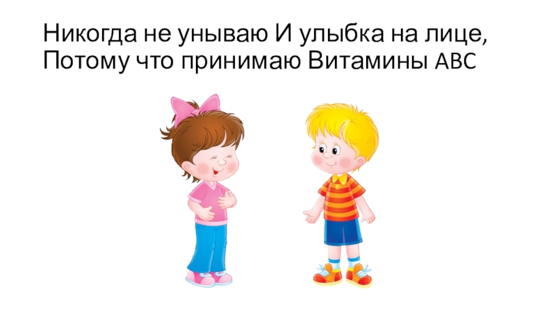Слайд 15Никогда не унываю И улыбка на лице, Потому что принимаю Витамины