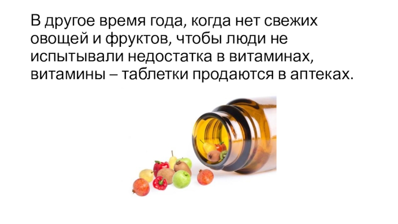 Слайд 14В другое время года, когда нет свежих овощей и фруктов, чтобы