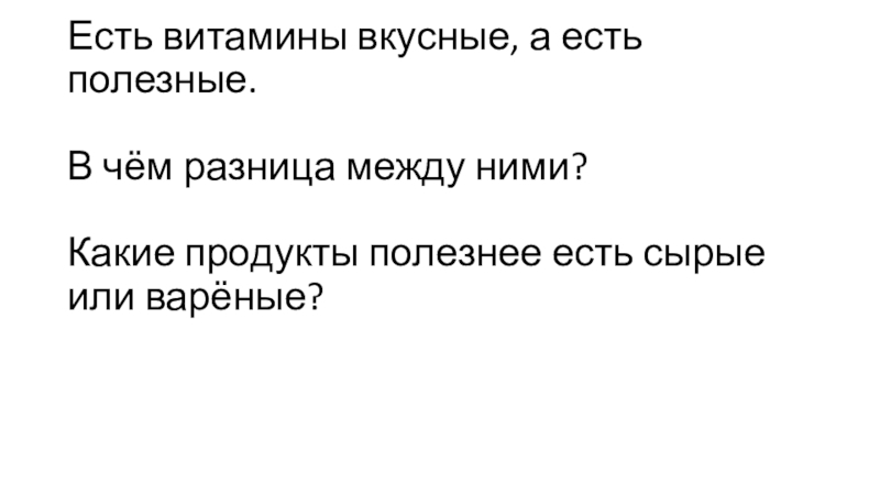 Слайд 7Есть витамины вкусные, а есть полезные. В чём разница между ними? Какие продукты