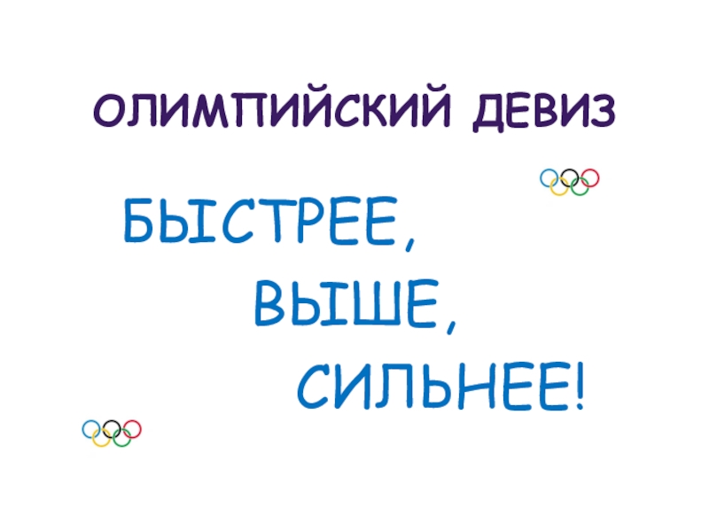 Олимпийский ДевизБЫСТРЕЕ, ВЫШЕ, СИЛЬНЕЕ!