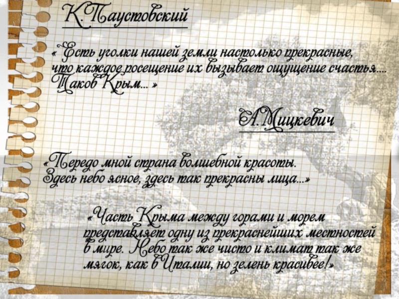 Презентация, доклад для детей дошкольного возраста Поэты и писатели о Крыме