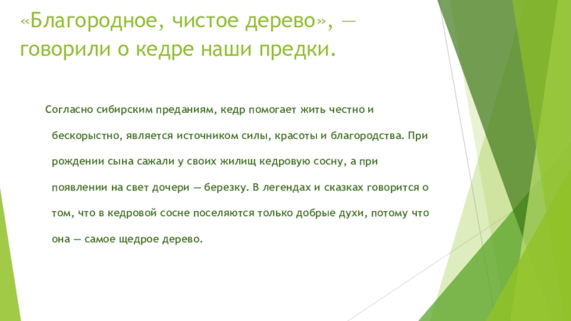 Слайд 6«Благородное, чистое дерево», — говорили о кедре наши предки.