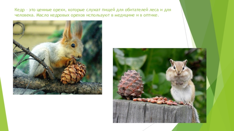 Слайд 5Кедр – это ценные орехи, которые служат пищей для обитателей леса