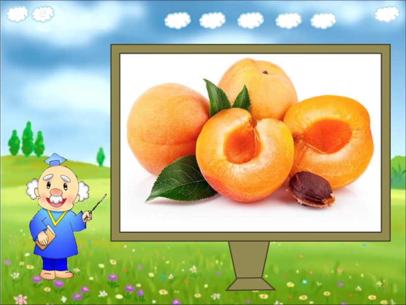 Слайд 2Что за фрукт поспел в садочке? Кость внутри, в веснушках щечки. Прилетел к