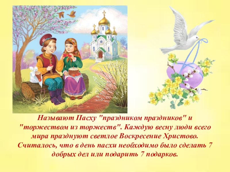всего мира празднуют светлое Воскресение Христово. Считалось, что в день пасхи необходимо было сделать 7 добрых дел или подарить 7 подарков.