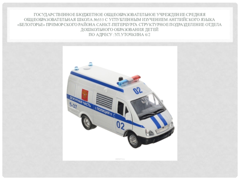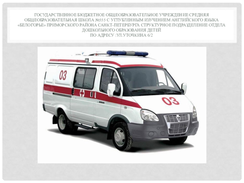 Формировать представление детей о специальном транспорте- скорой, пожарной и полицейской машинах