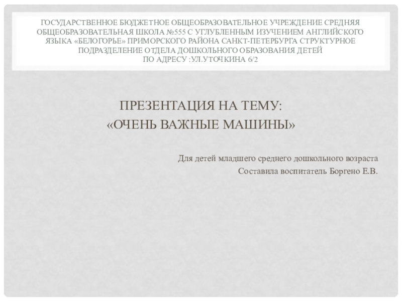 «ОЧЕНЬ ВАЖНЫЕ МАШИНЫ»