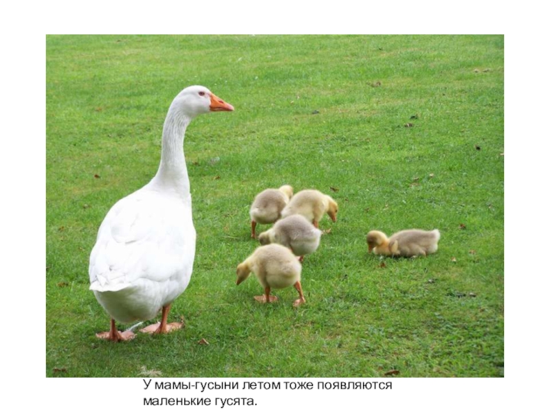 Слайд 8У мамы-гусыни летом тоже появляются маленькие гусята.