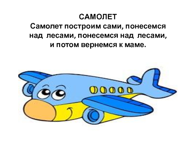 САМОЛЕТ Самолет построим сами, понесемся над лесами, понесемся над лесами, и потом вернемся к маме.