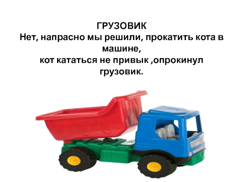Слайд 5ГРУЗОВИК Нет, напрасно мы решили, прокатить кота в машине, кот кататься не привык