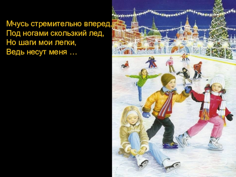 Мчусь стремительно вперед,Под ногами скользкий лед,Но шаги мои легки,Ведь несут меня …