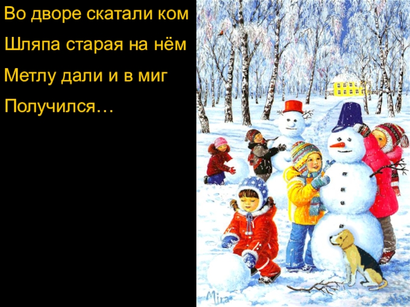 Во дворе скатали комШляпа старая на нёмМетлу дали и в миг Получился…