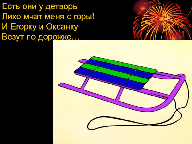 Есть они у детворыЛихо мчат меня с горы!И Егорку и ОксанкуВезут по дорожке…