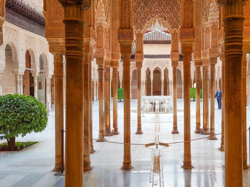 Львиный дворик. Фонтан во внутреннем дворике украшен мраморными изваяниями двенадцати львов.