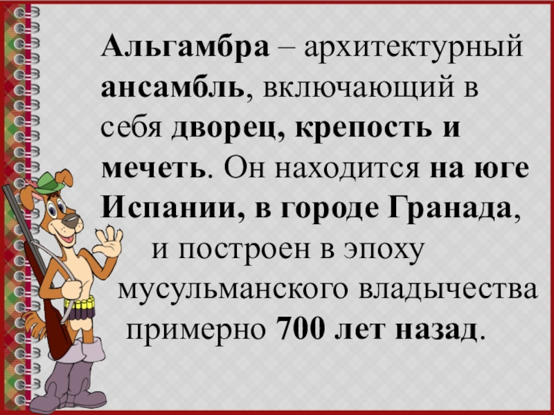 Презентация, доклад для детей начальной школы. АЛЬГАМБРА.