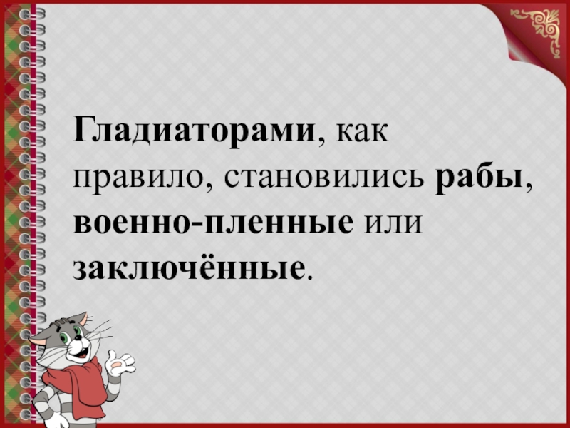 Слайд 7Гладиаторами, как правило, становились рабы,