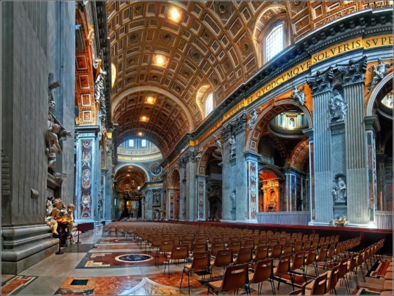 Слайд 4Строительство собора было закончено в семнадцатом веке. Он находился в Риме