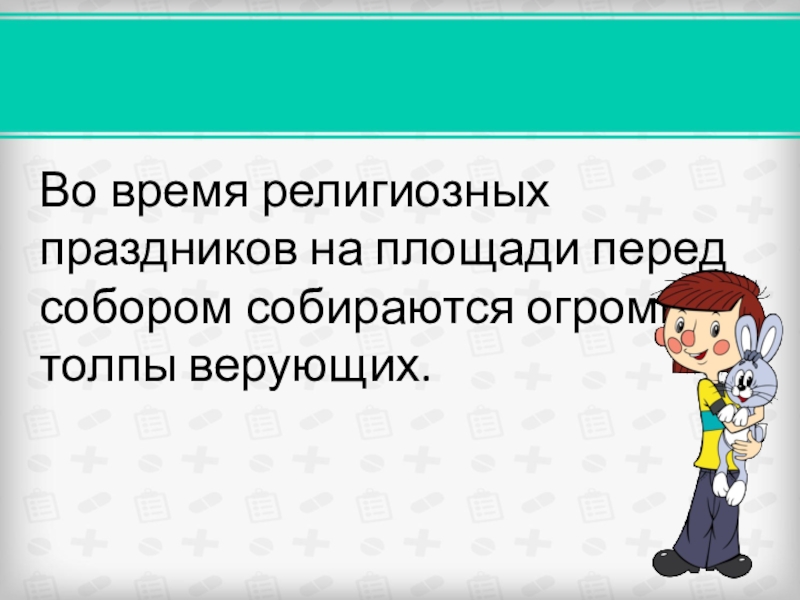 Слайд 7Во время религиозных праздников на площади перед собором собираются огромные толпы