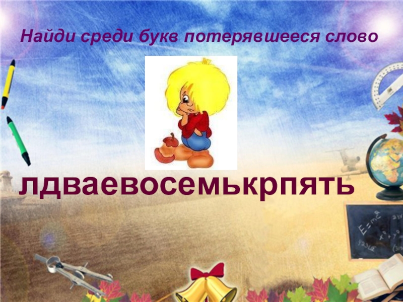 Найди среди букв потерявшееся слово лдваевосемькрпять