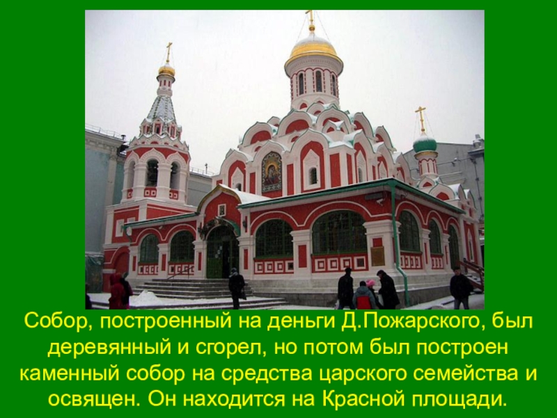 Слайд 10Собор, построенный на деньги Д.Пожарского, был деревянный и сгорел, но потом