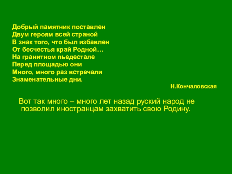 Вот так много – много лет назад руский народ не позволил иностранцам захватить свою Родину.