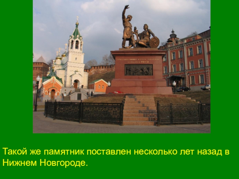 Слайд 12Такой же памятник поставлен несколько лет назад в Нижнем Новгороде.