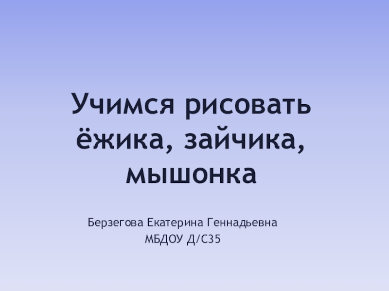 Берзегова Екатерина ГеннадьевнаМБДОУ Д/С35Учимся рисовать ёжика, зайчика, мышонка