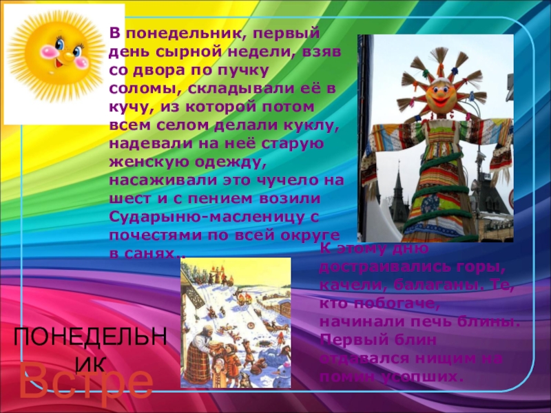 В понедельник, первый день сырной недели, взяв со двора по пучку