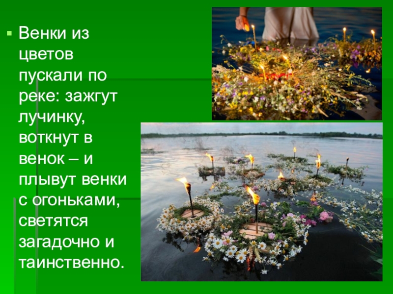 Венки из цветов пускали по реке: зажгут лучинку, воткнут в венок