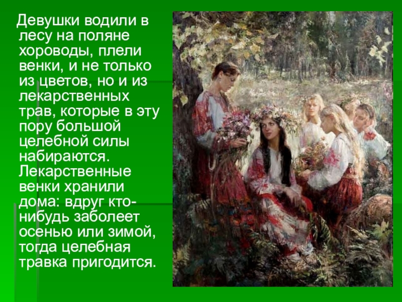 Девушки водили в лесу на поляне хороводы, плели венки,