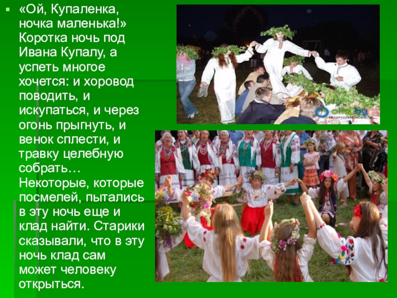 Презентация, доклад для детей подготовительной группы о народном празднике Ивана Купалы