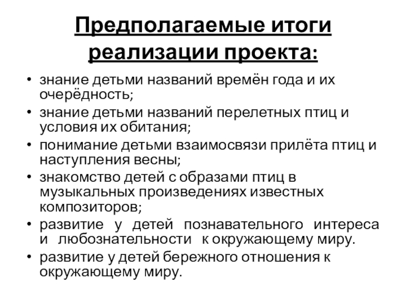 понимание детьми взаимосвязи прилёта птиц и наступления весны;