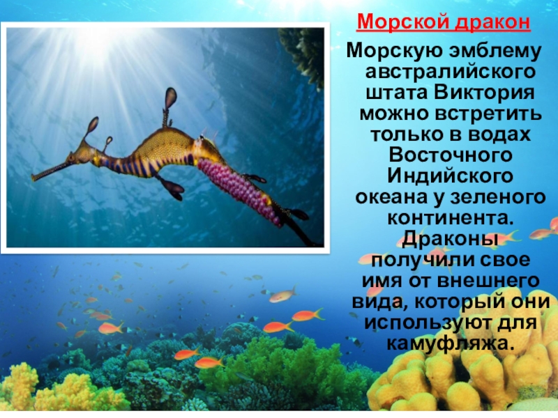 Восточного Индийского океана у зеленого континента. Драконы получили свое имя от внешнего вида, который они используют для камуфляжа.