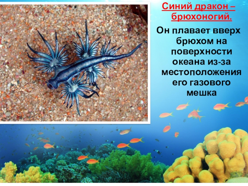 Слайд 13Синий дракон – брюхоногий.