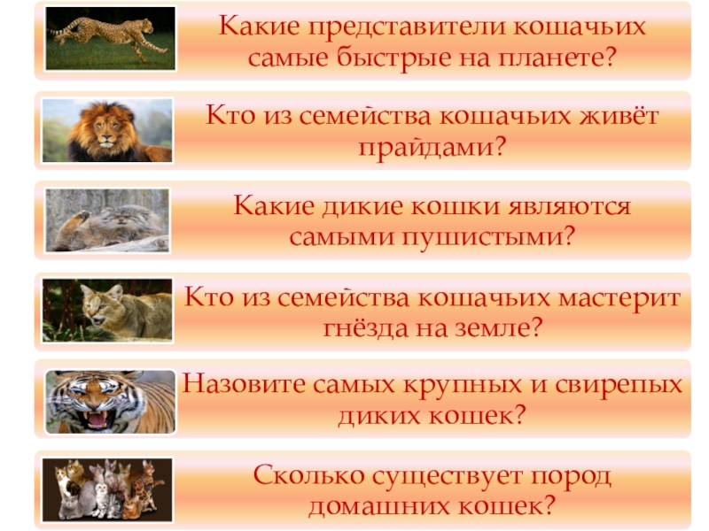 Презентация, доклад для детей подготовительной группы Семейство кошачьих