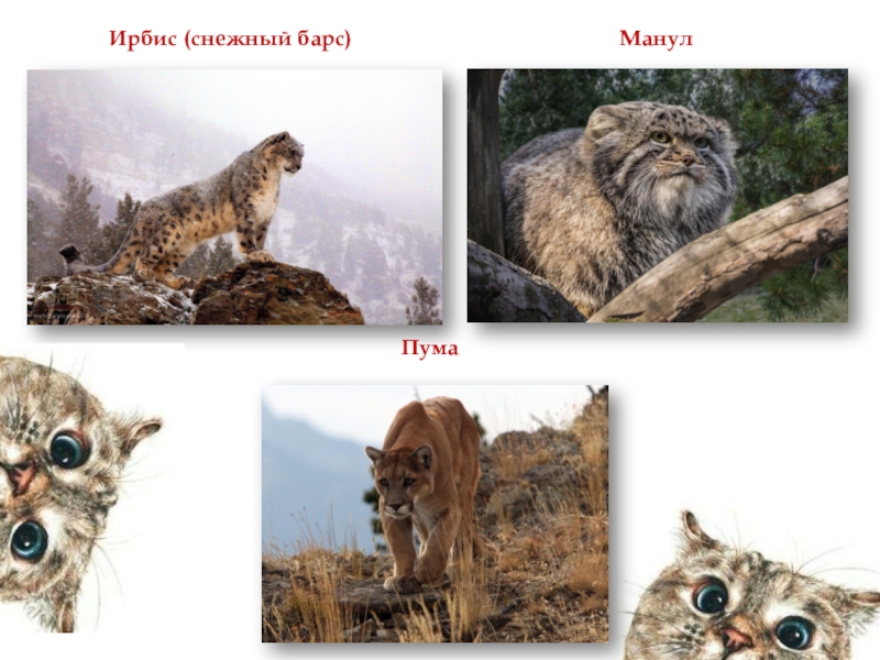 Амурский тигрЛеопардИрбис (снежный барс)Лесная кошкаМанул Красная книга