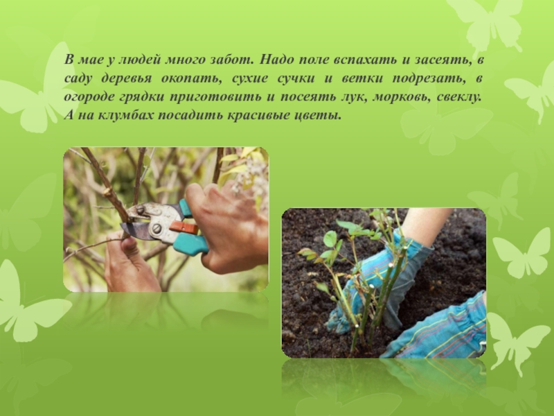 Слайд 31В мае у людей много забот. Надо поле вспахать и засеять,