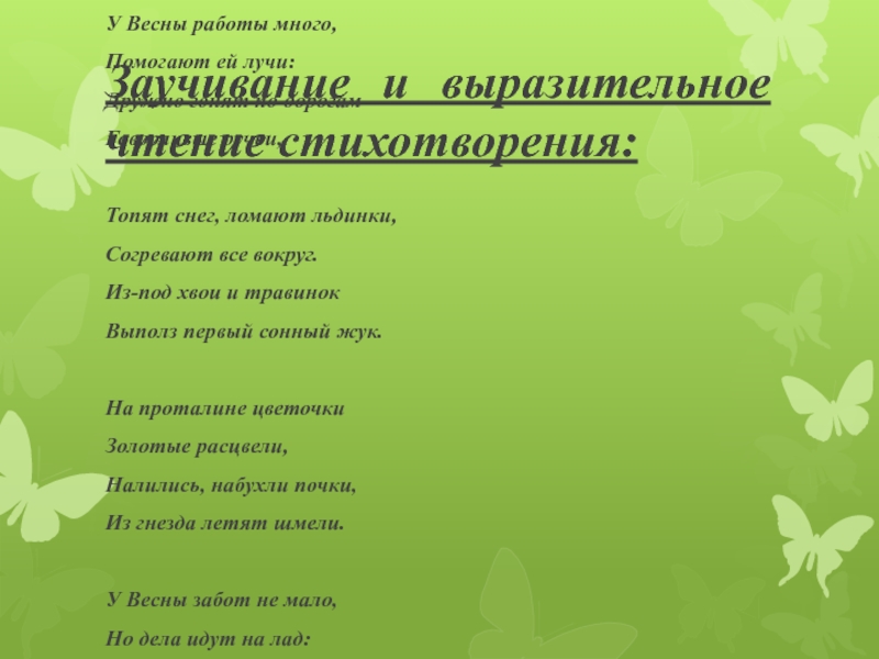 Слайд 36Заучивание и выразительное чтение стихотворения: