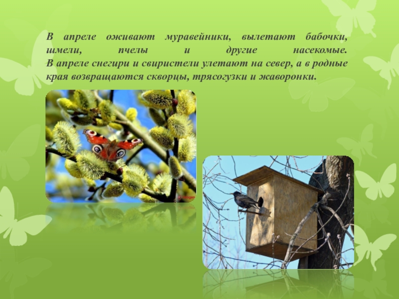 Слайд 17В апреле оживают муравейники, вылетают бабочки, шмели, пчелы и другие насекомые.