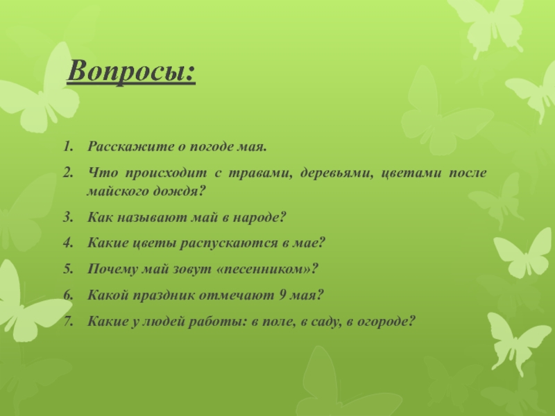 Слайд 25Про весну народ говорит: «Весна цветами красна», а месяц май называет