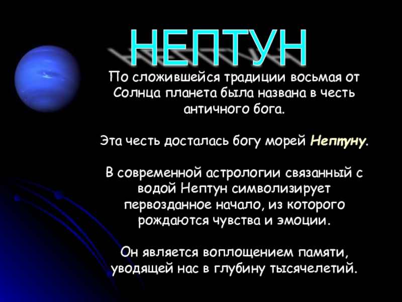 По сложившейся традиции восьмая от Солнца планета была названа в