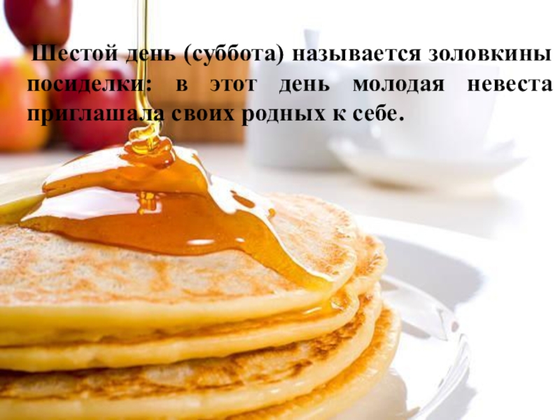 Шестой день (суббота) называется золовкины посиделки: в