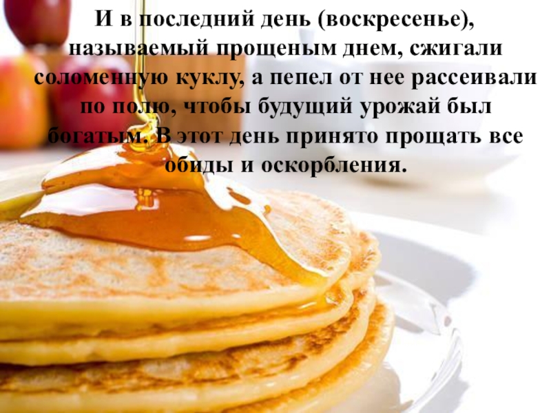 Слайд 22 И в последний день (воскресенье), называемый прощеным днем, сжигали