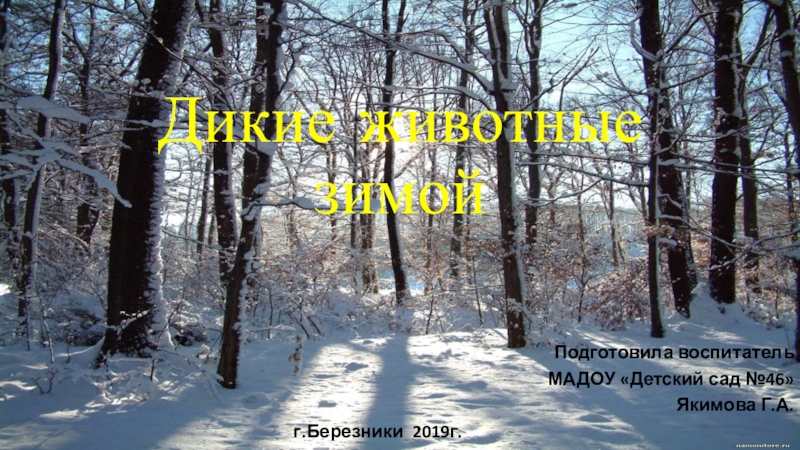 Дикие животные зимойПодготовила воспитатель МАДОУ «Детский сад №46»Якимова Г.А.г.Березники 2019г.