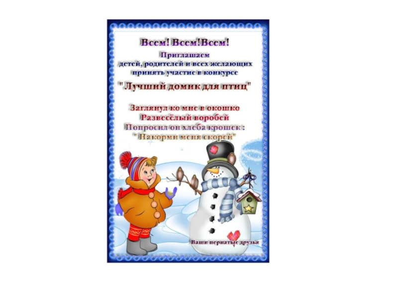 Презентация, доклад для детей среднего дошкольного возраста--Птицы-наши друзья