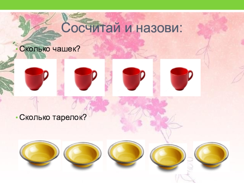 Сосчитай и назови:Сколько чашек?Сколько тарелок?