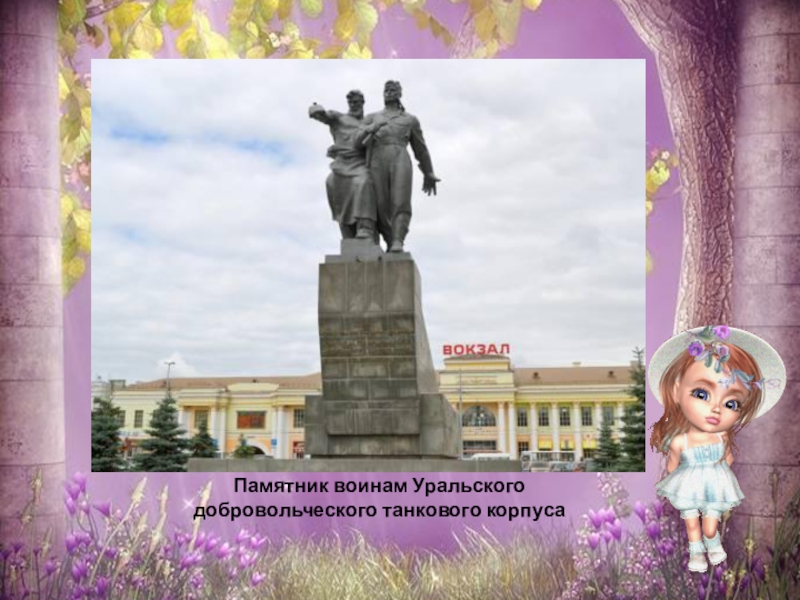 Слайд 36Памятник воинам Уральского добровольческого танкового корпуса