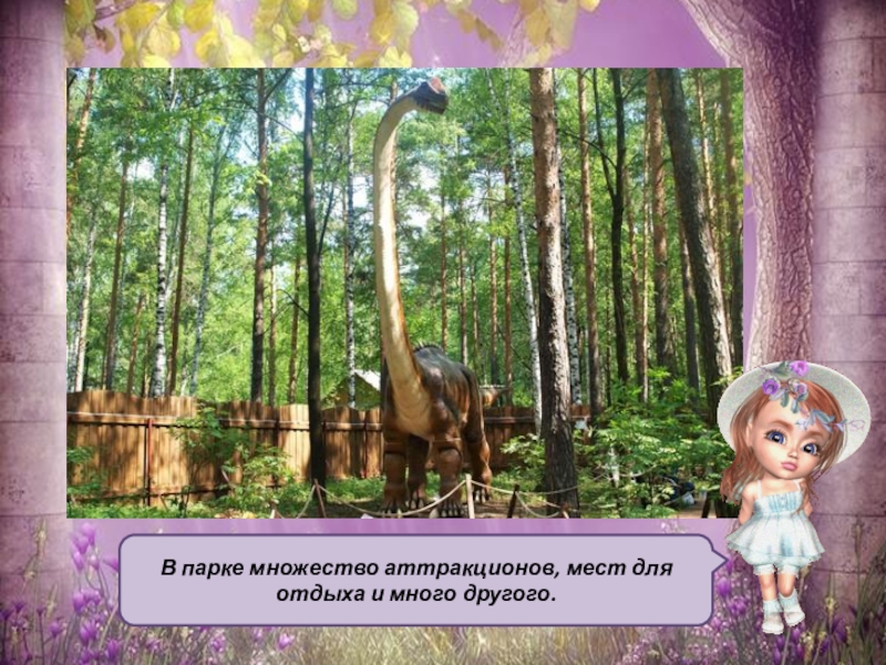 Слайд 24В парке множество аттракционов, мест для отдыха и много другого.