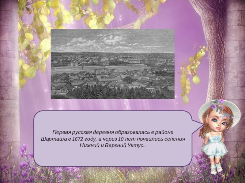 Слайд 4Первая русская деревня образовалась в районе Шарташа в 1672 году, а