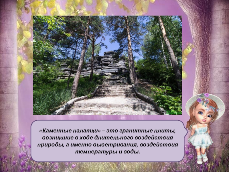 Слайд 16«Каменные палатки» – это гранитные плиты, возникшие в ходе длительного воздействия